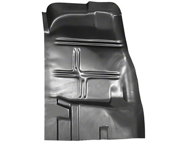 The El Camino Store stamped steel sheet metal floor pan repair panels are crucial when rust rears its ugly head. 1973, 1974, 1975, 1976, or 1977 El Camino floor pans take a beating over the years and are rarely rust-free. The El Camino Store sources sheet metal floor pans from the world’s premium manufacturers to bring you only the very best for your El Camino restoration. Floor pans are stamped on heavy ton equipment from correct gauge steel to ensure factory style contours and maximum rigidity over originals. This left side partial front&nb