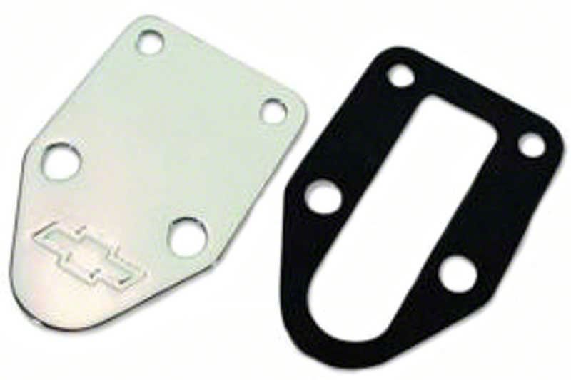 Fuel Pump Mounting Hole Block-Off Plate, Small Block, Bowtie Logo, Chrome, With Gasket (64-72 El Camino; 71-72 Sprint)