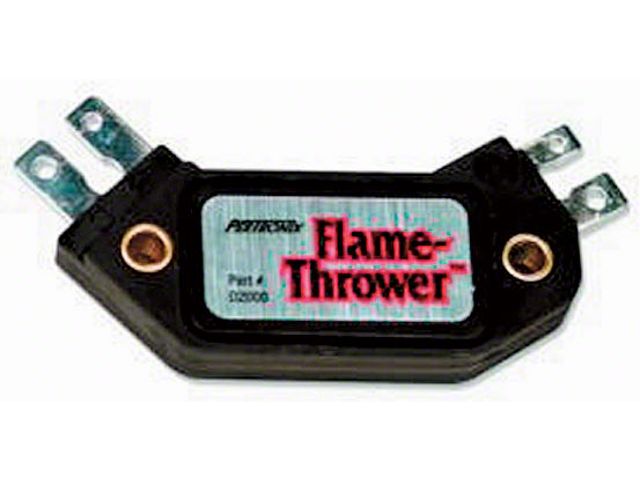 Pertronix Flame Thrower performance ignition modules are direct replacements for popular GM and Ford computer controlled distributors. These modules provide enhanced high RPM performance and when used with their corresponding Flame-Thrower coil, increase spark plug voltage by more than 40%.