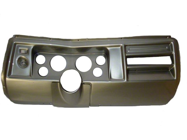 Your 1969 El Caminos instrument cluster panel may require replacement after years of wear and tear. Overtime, the elements take their toll. The years can be quite harsh on your classic's interior. Once you notice cracking, dilapidation, and disrepair creep into your dash, it may be time to invest in a new instrument cluster panel. Update your 1969 El Camino interior with a Classic Dash gauge panel from The El Camino Store. Classic Dash's Molded UV Resistant ABS Instrument Panel will replace the original gauge housing. The El Camino Store offers this upgrade, Instrument Cluster Panel, Aluminum Finish, With 6 Pre-Cut Holes, for your custom hotrod project. Designed for an easy, trouble free installation, in your El Camino. A