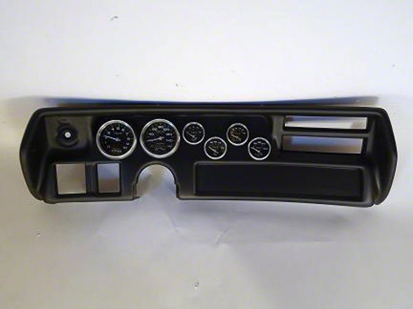 A new El Camino instrument cluster is the best way to end or begin your 1970, 1971, 1972 El Camino restoration. After all the time and money you put into your classic Chevy, it would be a shame to compromise on something as crucial to your car's integrity as the dash. A new El Camino instrument cluster will place your cherished restoration light years ahead of your neighbors. The Classic Dash molded ABS instrument panel will replace the original gauge housing. Classic Dash clusters come complete with 3-3/8 inch 160 MPH speedo, 10,000 RPM tach, 2-1/16 inch oil pressure, water temperature, 0-90 ohm fuel level and volt gauge.