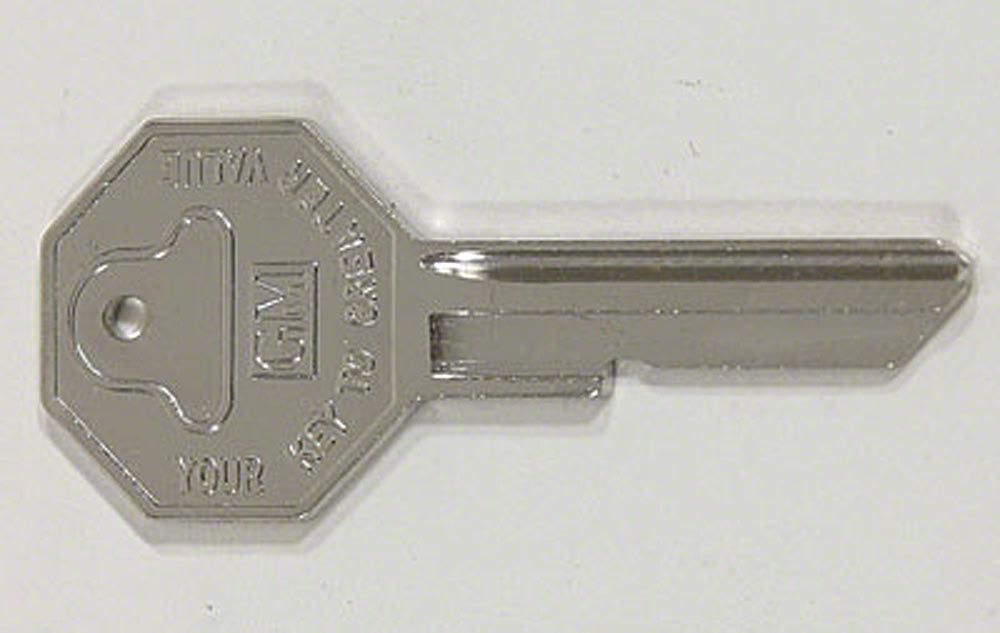 This stock replacement key blank is manufactured by GM or by one of its authorized suppliers for use as a factory replacement part. You will find the fit, finish and function meets all GM specifications. Using stock replacement parts from the El Camino Store, such as this key blank, is a sound investment in the restoration or repair of your vehicle.