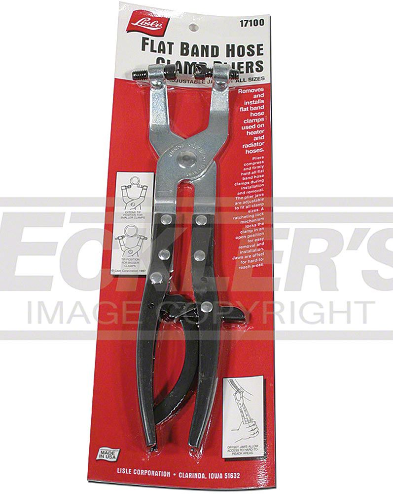 Removes and installs hose clamps on heater and radiator hoses. Tips screw in and out to fit all sizes of clamps. Ratcheting lock mechanism holds the clamps in an open position for easy removal and installation. Tips can be switched to accommodate different applications. Offset jaws allow access to hard-to-reach areas.