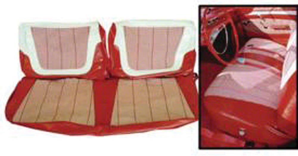For your 1959 El Camino, you’ve come to the perfect place! The El Camino Store offers only the finest show-quality El Camino interiors. Front seat covers for the 1960 El Camino is made in the Impala style. Using tow colors of 1959 Seville crush grain vinyls, vertical heat sealed mylar strips on the backrest. Sewn together from original patterns using our weight duplicated seat insert cloth. All installation listing sewn in the proper areas. We compared the components offered by the leading automotive upholstery manufactures and selected each piece based on how close the quality, workmanship, correctness, grain and color matched the original El Camino upholstery. All our interiors are proudly made in the USA using m