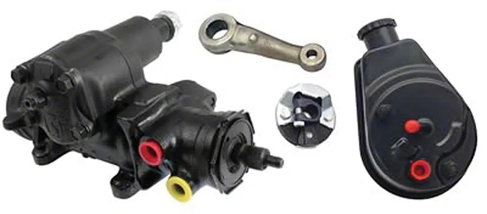 Convert over to power steering with one of our power steering kits. Our kits are designed to be a direct bolt-on into your car. Kits include: Quick Ratio Power Steering Box, Steering Rag Joint, Power Steering Pitman Arm and Power Steering Pump.
