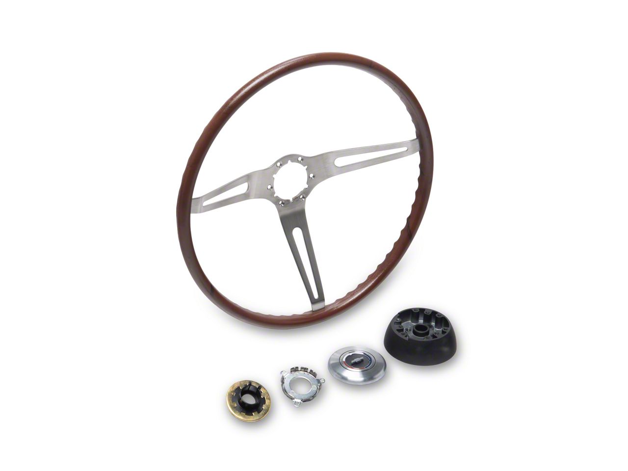 This El Camino reproduction rosewood steering wheel kit has been manufactured to original factory specifications using today's modern manufacturing techniques. You will find the fit, finish and function will work superbly for your restoration. In addition, using a reproduction rosewood steering wheel kit from the El Camino Store will add authenticity and value to your vehicle.