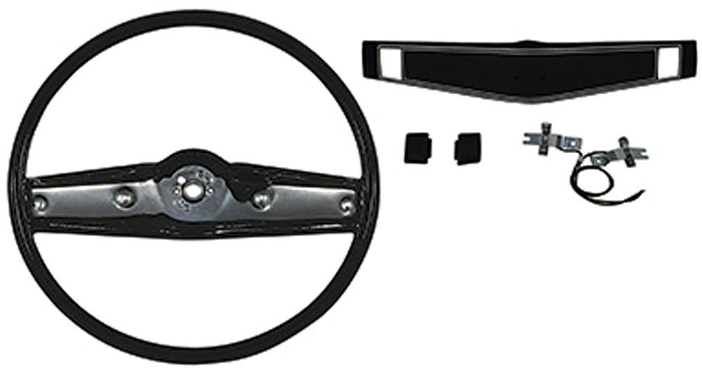 Let's face it. UV radiation has not been kind to your original El Camino black steering wheel over the years. The El Camino Store offers this nice reproduction of the El Camino standard, 2 spoke, steering wheel. Replace yours today and you won't have to look at the unsightly cracks in your old El Camino steering wheel any longer.