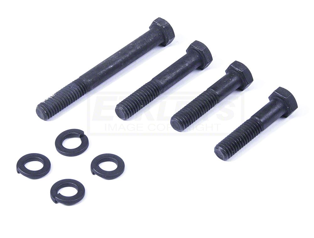Authentic hardware you need to correctly reassemble the engine components. Most fasteners have correct markings for the time period. This eight-piece kit includes hex bolts and split washers.