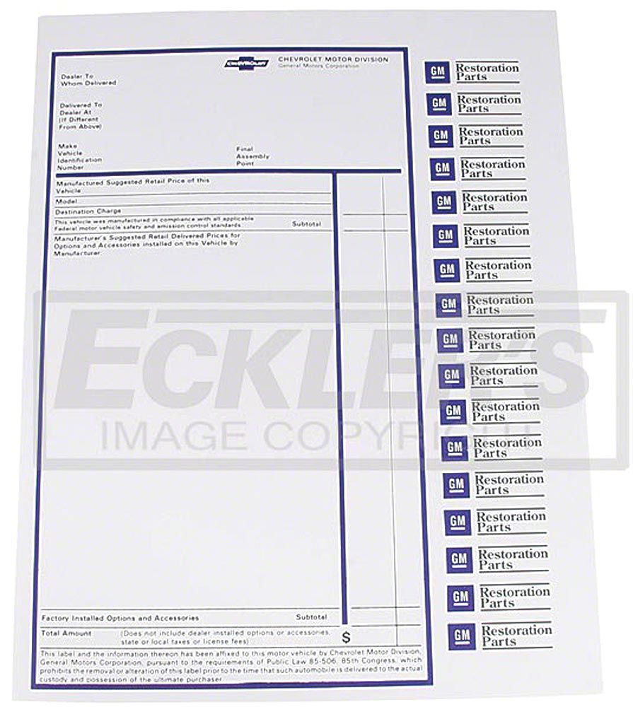 - Reproduction Of Original Official Window Sticker As Found On Your El Camino When New