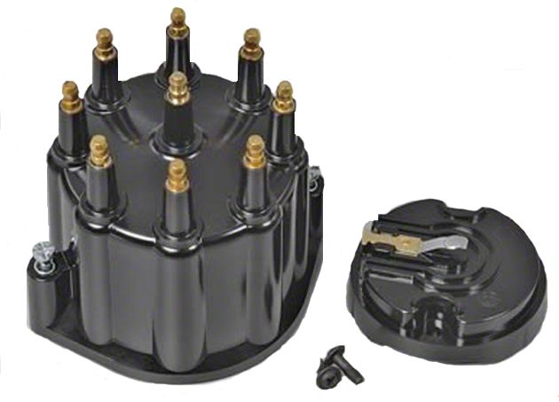 The Flame-Thrower distributor cap and rotor kit is manufactured to specification by PerTronix. This distributor accessory is made from a high-dielectric, 60 kV alkyd compound. The innovative construction of this product ensures minimal arcing and crossfire, securing your 1964-1983 El Camino superior spark for years to come. This replacement distributor cap and rotor is designed for use with Flame-Thrower billet and cast distributors. Featuring a male brass terminal, a premium brass rotor, and a stylish black distributor cap, this is a must-have for your next distributor upgrade. For superior spark and a trusted name, invest in a PerTronix distributor cap and rotor kit for your classic El Camino. Always trust The El Camino Store for all your performance and restoration needs!