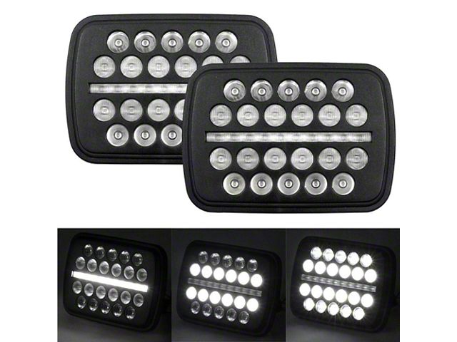 The Eagle Lights SL5732B 5X7 LED headlight utilizes 32 LED diodes each to light up the night. Featuring two rows of 6 LEDs for a bright low beam and two rows of 5 LEDs added in for high beam. With an additional 10 LED DRL light bar, it creates some of