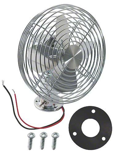 Here's a bit of nostalgia, a chrome plated all-metal fan for your dash. Use for windshield de-fogging or cooling fan for hot, humid days.