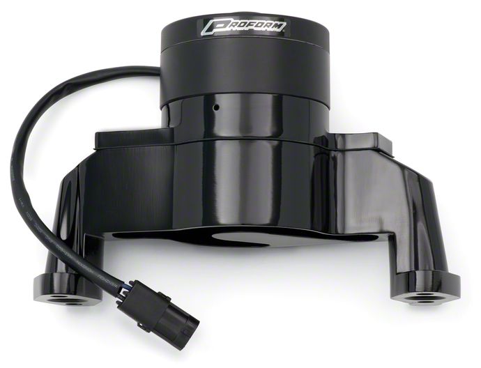Electric Engine Water Pump; Fits Small Block Chevy Engines; Made From High-Quality Die Cast Aluminum; Black Powder Coat Finish; Flows 35 GPM; Billet 1.0 Inch NPT to 1-3/4 Inch Hose Fitting Included; Sold Individually