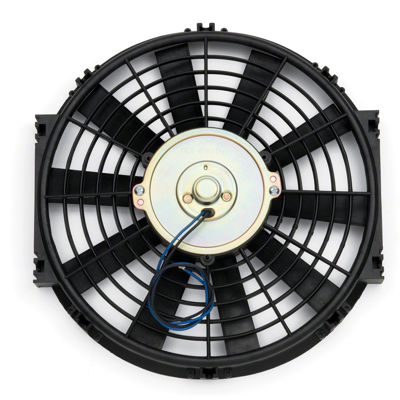 Electric Radiator Fan Kit; High Performance Model; 12 Inch Diameter; 3000 RPM and 1200CFM Rating; 7 Amp Draw; Uses a 25 Amp Fuse; Measures 12.25in. Wide X 12.25in. High X 2.75in. Thick; Nylon Tie Mounting Kit Included