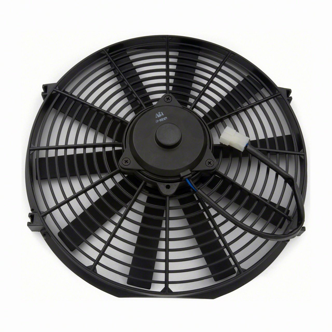 Electric Radiator Fan Kit; High Performance Model; 14 Inch Diameter; 2500 RPM and 1650CFM Rating; 8 Amp Draw; Uses a 30 Amp Fuse; Measures 14.5in. Wide X 14.5in. High X 4in. Thick; Nylon Tie Mounting Kit Included