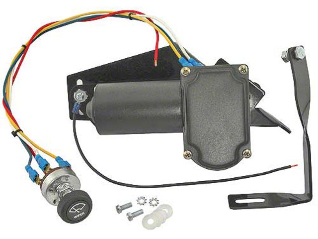 The electric wiper motor conversion kits are designed to bolt in place of the stock vacuum wiper motor. The motor is heavy duty, 2 speed and self-parking. Kit includes mounting brackets, dash mount switch, fuse and instructions. Will not work on cars with original radios.