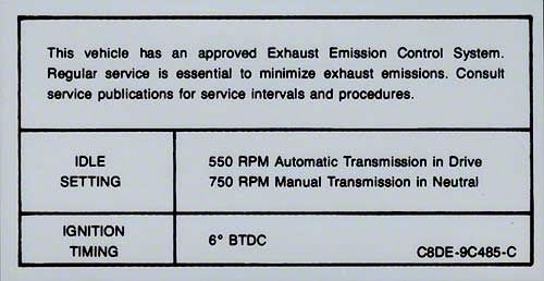 Eckler's no longer carries the Emission Decal - Automatic & Manual Transmissions 289, 302 & 351, 2 Barrel (68-69 Falcon).