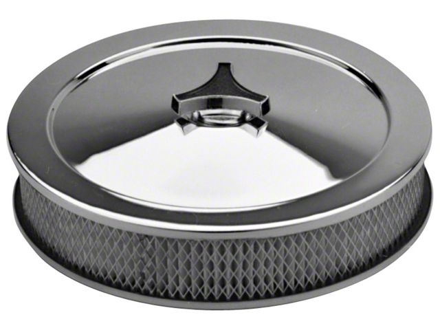 Carburetor Air Cleaner Kit; 10 Inch Diameter; Deluxe Model; No Logos; Chrome Plated Finish; Made from High-Quality Steel; Fits 5-1/8 Carb Flange and Comes With 4-7/32 Adapter; Paper Filter and Tri-Star Wing Nut Included; Sold As One Kit