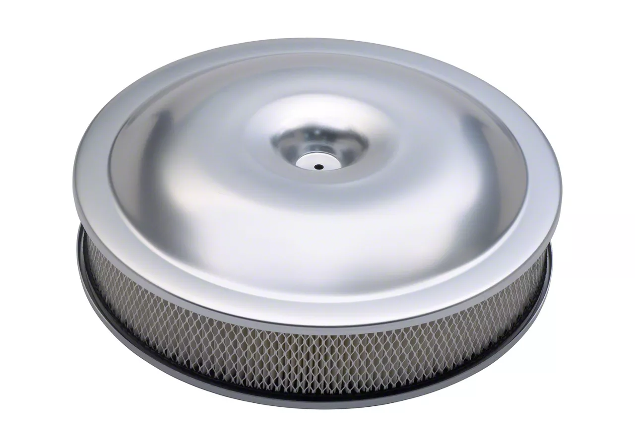 Carburetor Air Cleaner Kit; 14 Inch Diameter; Super-Light Series; No Logos; Made From High-Quality Aluminum; Clear Finish; 3 Inch Installed Carb Height and 1.50 Inch Dropped Base; Paper Filter Included; GM Licensed Product; Sold As One Kit