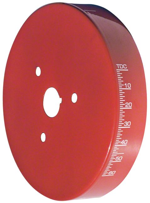 Engine Harmonic Balancer Cover; Fits Small Block Chevy Using 6-3/4 Inch Damper; Made From Aluminum With Red Anodized Finish; Features Degree Markings 60 BTDC to 0 TDC-A; Simple Bolt-On Installation; Sold Each