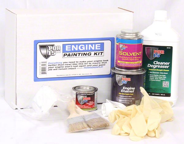 This kit contains everything needed to create a superior finish for your engine. Kit includes special engine cleaner, metal ready prep por rust preventative paint and solvent, and por extra pigment engine enamel paint. Also included are detailed instructions, brushes, breathing mask and protective gloves. This product must be shipped via ground service.