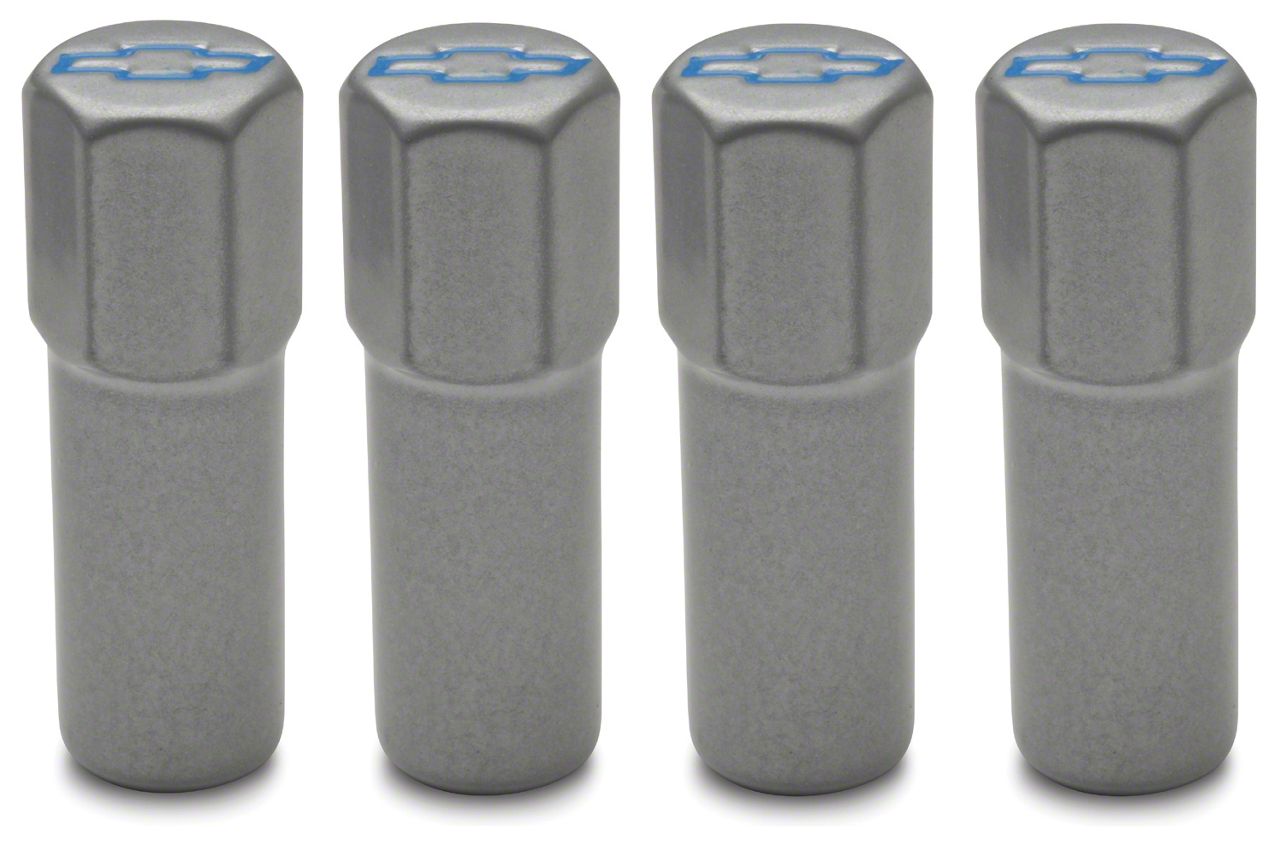 Engine Valve Cover Mini Nuts; Metal Gray Finish With Blue Bowtie Logo; Made From Quality Steel; Hex Head With 1/4-20 Thread 1.500 In. Studs Included; Washers Sold Separately; Officially Licensed GM Product; Sold As One Set of Four Pieces
