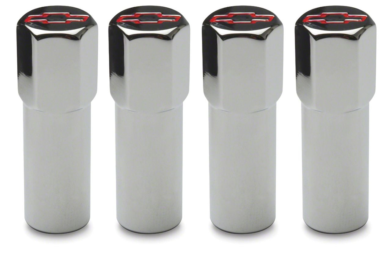 Engine Valve Cover Mini Nuts; Chrome Finish With Red Bowtie Logo; Made From Quality Steel; Hex Head With 1/4-20 Thread 1.500 In. Studs Included; Washers Sold Separately; Officially Licensed GM Product; Sold As One Set Of Four Pieces