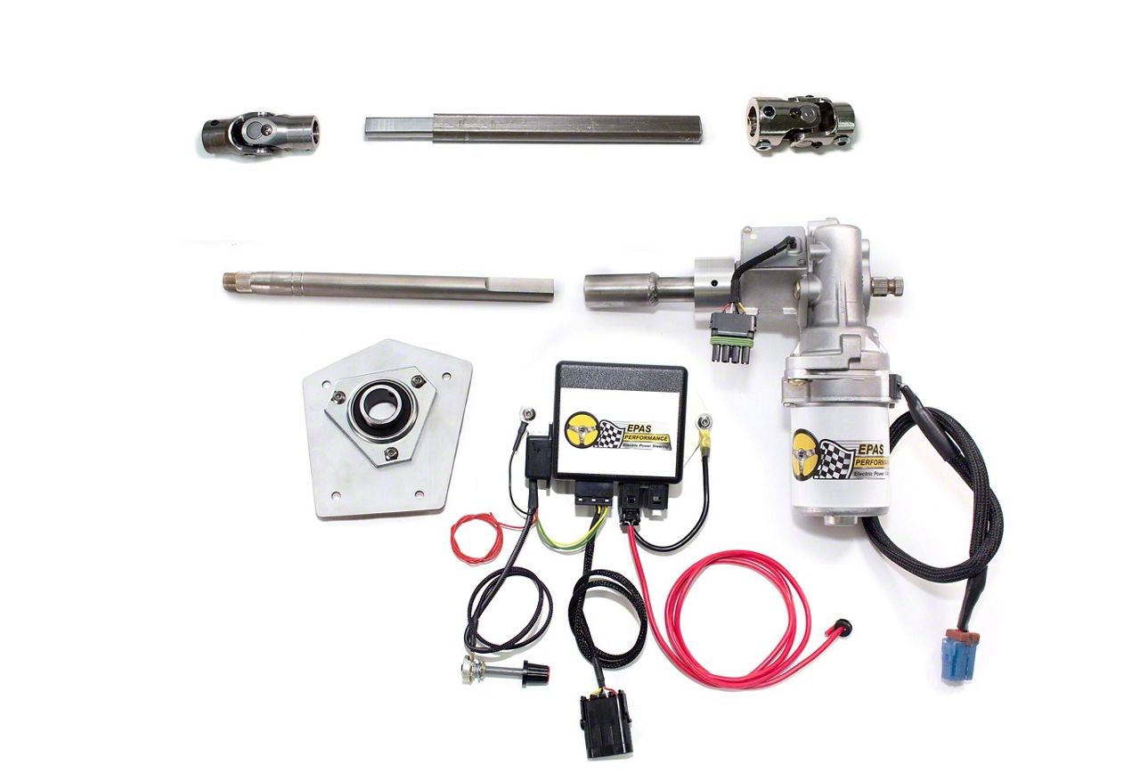 Kits available for floor shift models only. Please call for details on column shift vehicles. Precut Pre-modified IDIDIT Tilt Column Finish Available in: Plain, Black Powder Coated, or Silver Powder Coated System can be Adapted to a rack or steering box: For Steering Rack equipped vehicles please contact EPAS Performance before placing your order as we will need additional information to complete your order. We will need to know whatsize shaft was used to get from the rack to the firewall in orderto attempt to adapt to it. The kit does not come with additional linkages to reach the rack, these must be purchased separately. Included in Kit: 60 amp electric motor unit. Mounting hardware. Prewired control module Notes: Features a low 9 amp draw. Average install time of 10 hours. Steering wheel not included How it works: The computer measures the amount of effort on the steering wheel and amplifies it with the aid of the electric motor. A potentiometer gives you control over the amount of assistance provided, allowing you to fine tune your EPAS experience. For example, you can have maximum power assist while on a parking lot, and less on the highway. The system is only active while turning. The installation of this system should be done by a professional mechanic or a very knowledgeable amateur. LEAD TIMES MAY VARY, CALL FOR TIME-FRAME IF DELIVERY SPEED IS IMPORTANT The product images shown may not be an exact representation of the actual product.