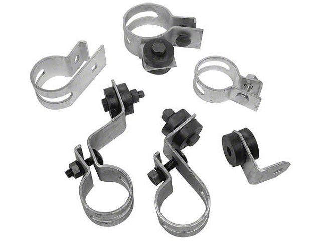 Correct support clamps & brackets for both muffler and exhaust pipe. All hardware is included. Also fits Pickup.