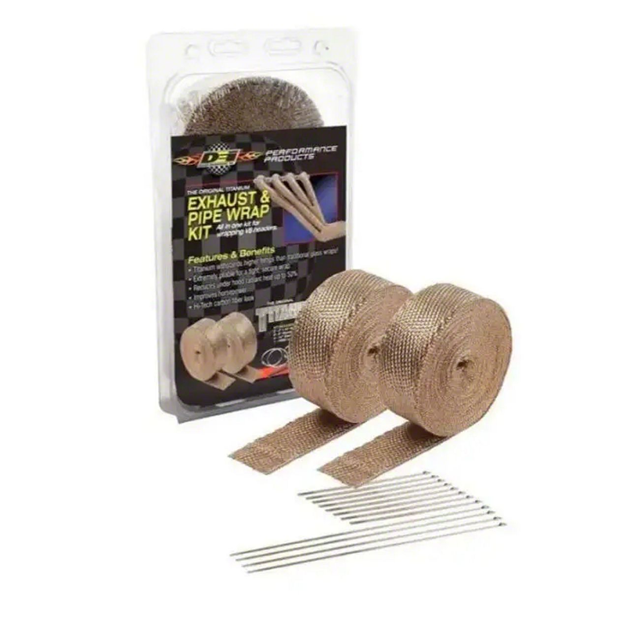 An all-in-one kit for wrapping a set of headers or motorcycle pipes. Kit includes two 2” x 50ft rolls of exhaust wrap, Locking Ties and Free Locking Tie Tool. Comes in Retail Clamshell Packaging The header wrap kit is enough for any set of V8 headers. The Header Wrap Kit will wrap from the top of the header where it bolts to the heads all the way down to the collector. Exhaust Wrap Kits save you time and money