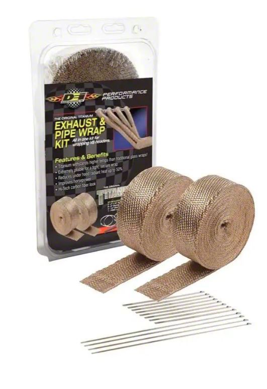 Eckler's no longer carries the Exhaust & Pipe Wrap Kit, Titanium. Please check out Early Chevy Exhaustfor an updated selection.