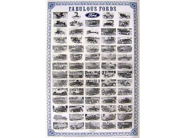 A nicely done black and white poster printed on heavy glossy paper that features 69 original Ford Model T, A and V8's fresh from the factory. A great showpiece for any restorer's den.