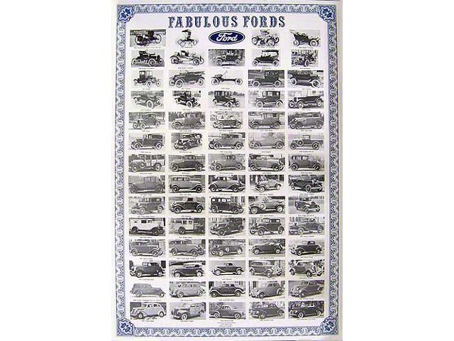 A nicely done black & white poster printed on heavy glossy paper, this poster features 69 original Ford Model T, A and V8's fresh from the factory. A great showpiece for any restorer's den. A perfect inspirational shop poster that can take just about anything you can throw at it! Laminated in plastic for protection.