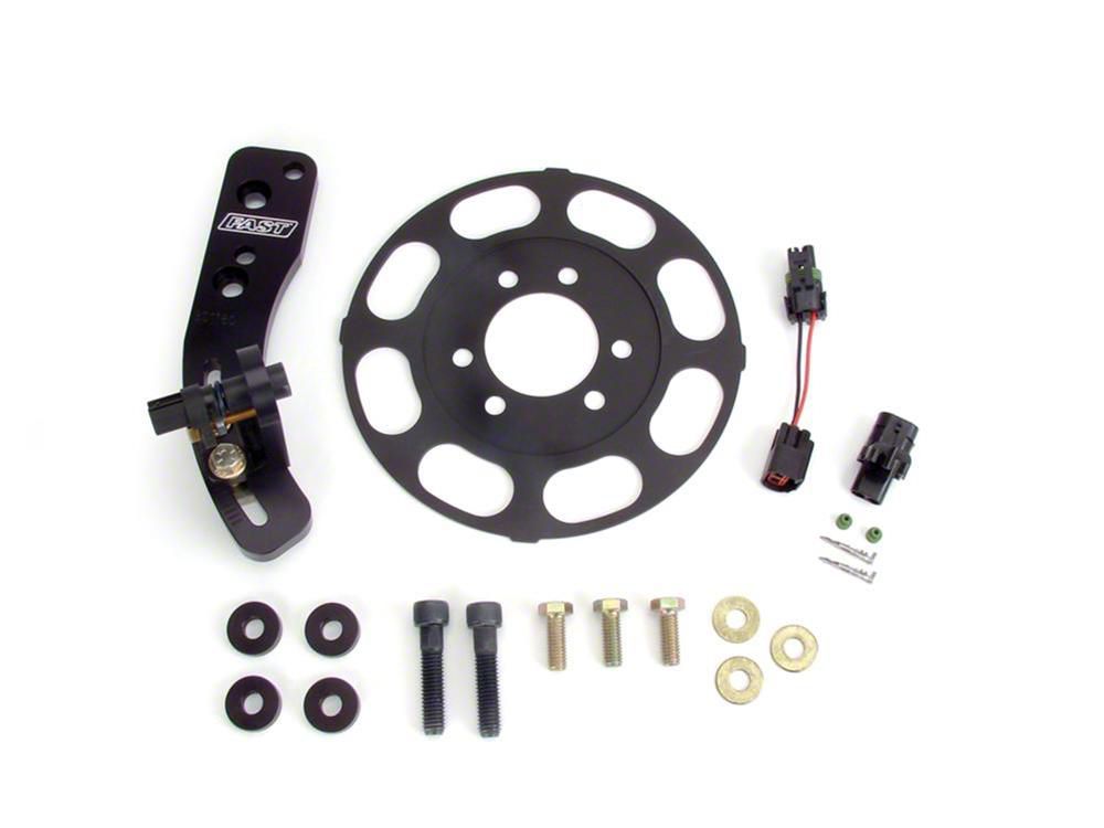 Recently, engineers at FAST turned to the OEMs to see what they trust in the way of rpm-measuring crank triggers for their 400 and 500 horsepower daily drivers. Until now, flying magnetic trigger wheels with bulky inductive pickups have been used with the risk of broken magnets or losing magnets at high engine rpm. Now there is a better answer--FAST magnet-free crank trigger kits. A magnet-free device, these kits from FAST include a wheel constructed from ASTM A36 grade steel that is so strong that it only needs to be .125 in. thick and is virtually indestructible. With the wheel being this thin, it not only weighs less but requires less space than competitors' aluminum versions. And the FAST inductive sensor is also much smaller than others on the market and is hermetically sealed with the connector molded into the body. The key to the crank trigger's dependability and accuracy lies in the trigger wheel design. Rather than having added magnets, the wheel has tabs on the outer rim. These tabs are measured by the inductive sensor as the wheel revolves, which then provides data to the fuel injection and ignition systems for accurate rpm measurement. And because the tabs are a part of the single wheel unit, there is no possibility of loss or fragmentation as with the magnetic style trigger wheels. This sensor is used by OEMs both on and inside the engine and provides long-lasting, accurate timing. Installation is straight forward, and everything required is included. For those already using the FAST XFI system, it's a plug and play unit. In addition, it's compatible with many other EFI systems on the market.