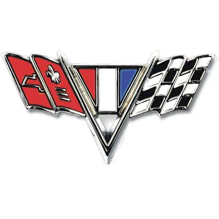 New front fender emblems on your 1964, 1965, 1966 or 1967 Chevrolet Bel Air, Biscayne, Caprice or Impala will really make that expensive new paint job pop at the local car show or cruise night. Eckler's Late Great Chevy brings you a high quality emblem that is an Officially Licensed GM Restoration part to make that happen. This V-flag emblem appeared on the front fender with a 327 or 409 emblem on your full size Chevy originally to show the world what was under the hood and you meant business! Trust Ecklers Late Great Chevy for all your restoration parts needs like our front fender cross flag emblem always at the best possible price.