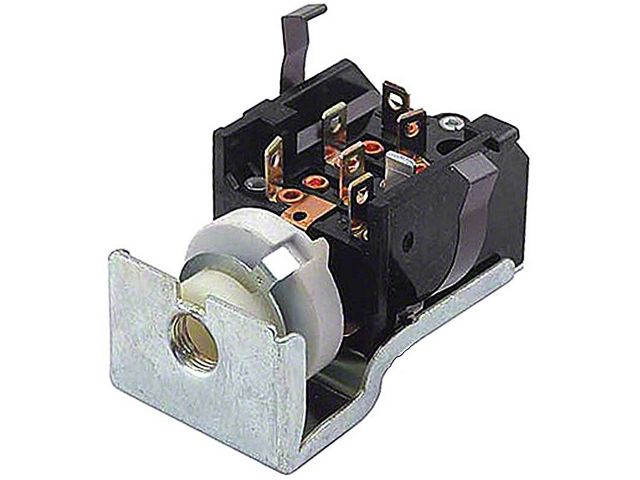 Reproduction 7-terminal headlamp switch (with metal retaining clips for plug) to fit various 1960-67 Ford and 1960-64 Mercury models. Correct configuration allows for convenient replacement of the FoMoCo original on 1960-64 Falcon, and 1961-67 Econoline and 1961-64 F-Series truck, among other models. Dash knob and shaft is not included, but can be purchased separately.