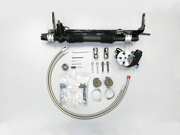 This is a center take off rear steer rack and pinion with a ball center bar that is the exact same size as the original center link. The one piece mounting bracket bolts to the same factory holes that help the steering box and idler arm, and orients the rack, placing the ball center bat in the same plane as the original center link.