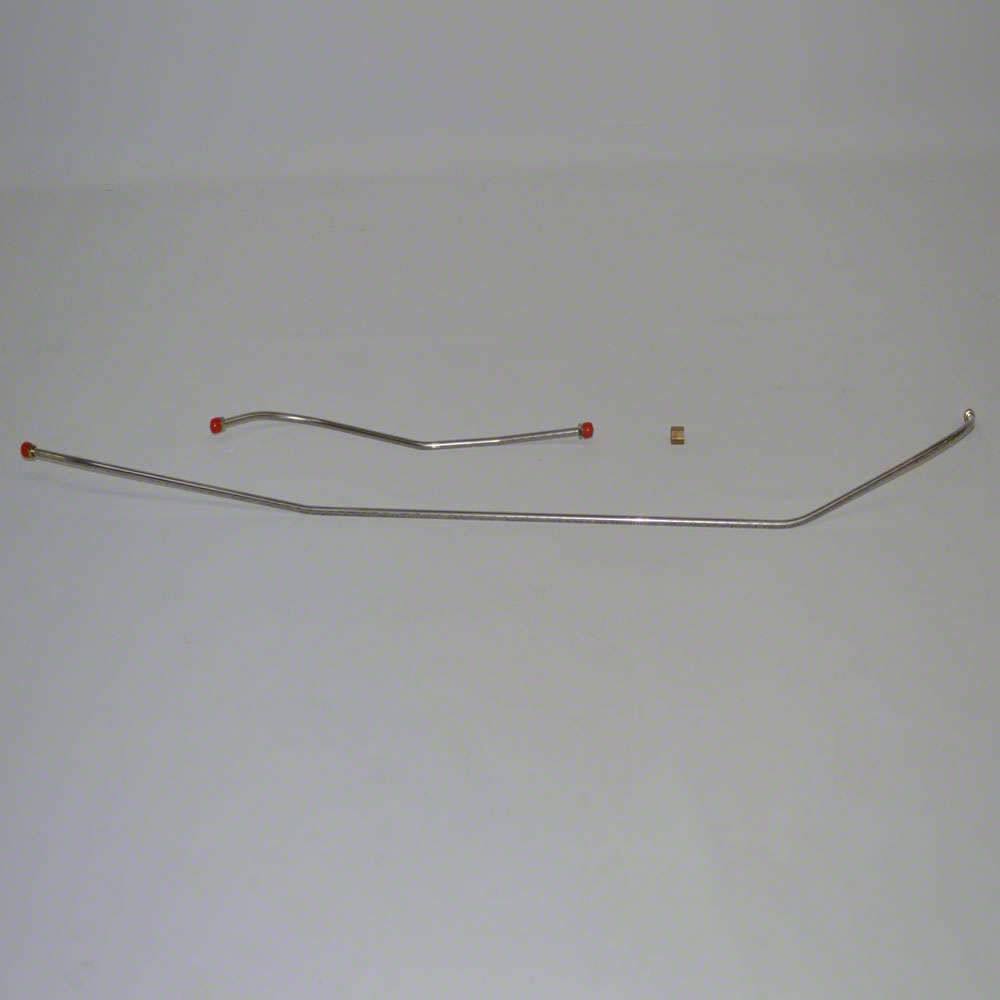 Fuel Line Kit For 55 Corvette 5/16 Inch 2 Piece Tank to Pump Fuel Line w/ Union Steel. Our Tank to engine Fuel Lines run from the back of the vehicle to the front. They will either connect to the fuel pump at the motor or run directly to a fuel rail. All lines come Pre-Bent and flared with the correct threaded fittings which reduces your install time tremendously. Our mild steel lines are Galphan coated for added protection. Our stainless-steel lines are T304 but are of a special softer blend to help with any possible leaks.