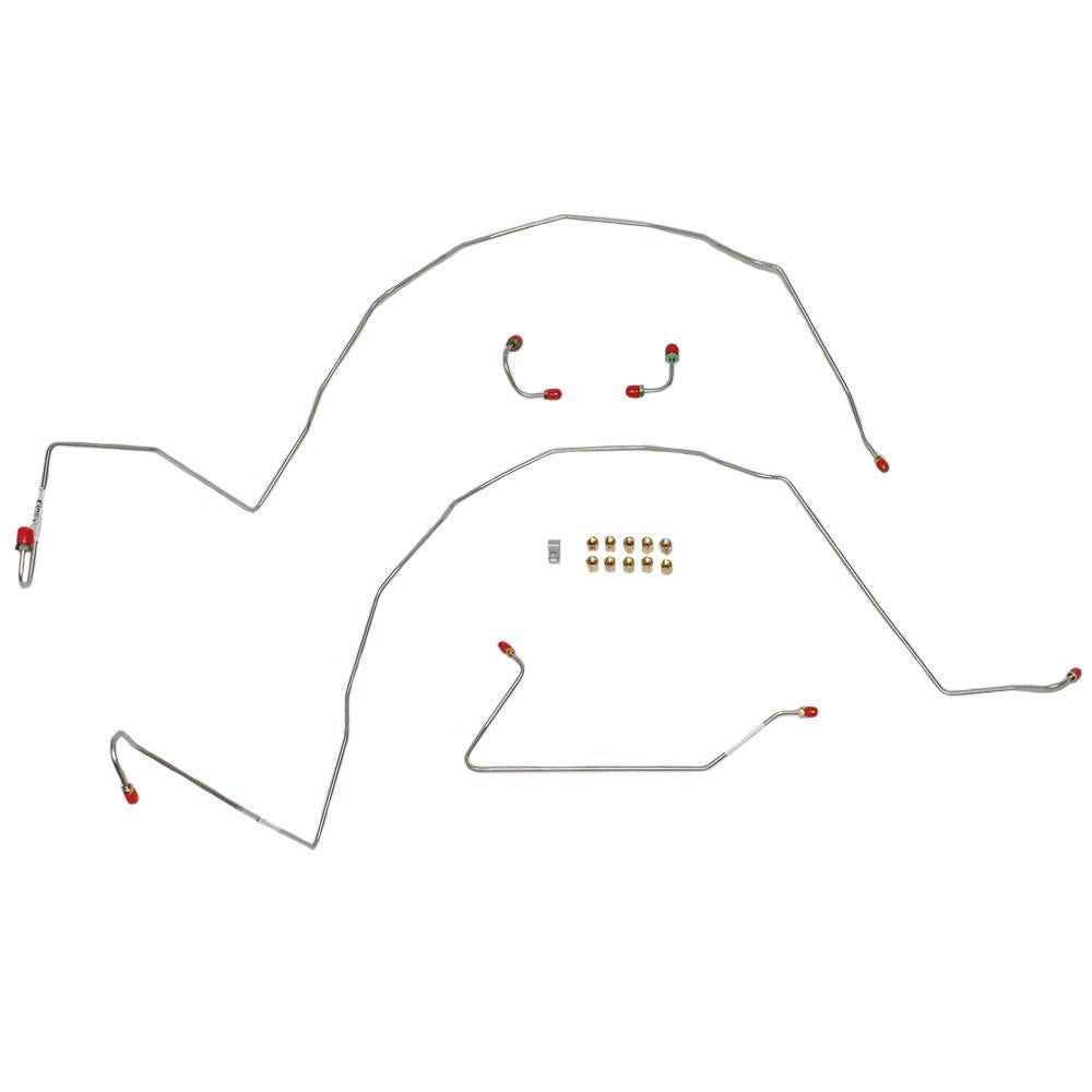Complete Brake Line Kit For 55 Chevy Bel Air with Manual Brakes and Single Exhaust Complete Steel. Our Complete Brake line Kits come with every hard line needed for your vehicle. This includes your master cylinder lines, ABS lines (if applicable), Intermediate lines and Your Rear axle lines. All lines come Pre-Bent and flared with the correct threaded fittings which reduces your install time tremendously. Our mild steel lines are Galphan coated for added protection. Our stainless-steel lines are T304 but are of a special softer blend to help with any possible leaks.