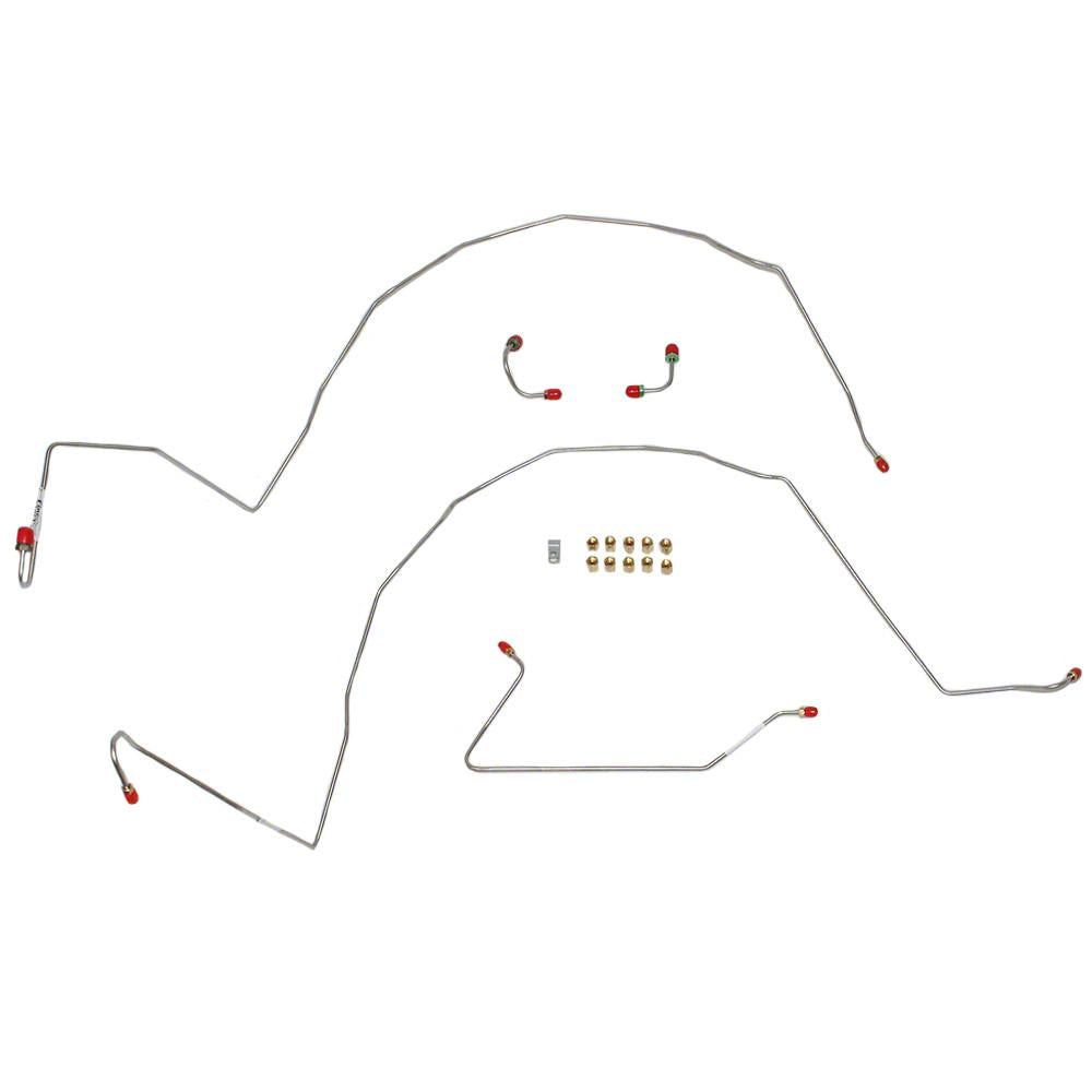 Front Brake Line Kit For 55-57 Bel Air Power Disc Steel. Our Front Brake Line Kits include your master cylinder lines and your lines going to your left and right front wheels. All lines come Pre-Bent and flared with the correct threaded fittings which reduces your install time tremendously. Our mild steel lines are Galphan coated for added protection. Our stainless-steel lines are T304 but are of a special softer blend to help with any possible leaks.