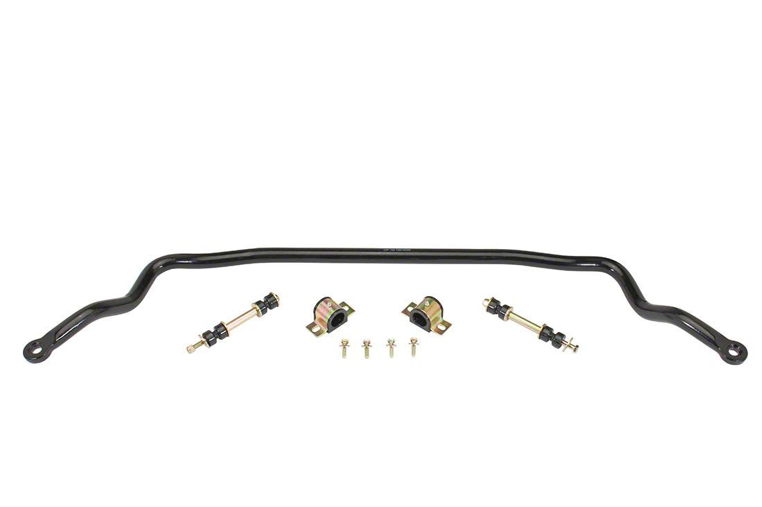 The 1964-1977 Chevy Chevelle, 1970-1981 Chevy Camaro, and 1975-1979 Chevy Nova 1-1/4" Front Solid Bar Sway Bar is engineered to enhance handling and cornering performance in these classic muscle cars. This front sway bar effectively reduces body roll, providing improved stability and control during turns. Each kit includes the solid sway bar, high-quality poly bushings, and all necessary hardware for straightforward installation. With a durable black powder coating, this sway bar not only improves your vehicle's handling but also complements the iconic look of your Chevelle, Camaro, or Nova.