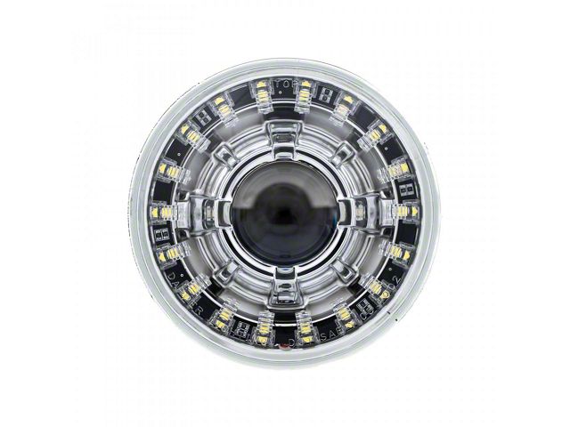 5.75-Inch High/Low Beam LED Headlight with Modern Switchback Halo; Chrome Housing; Clear Lens (Universal; Some Adaptation May Be Required)