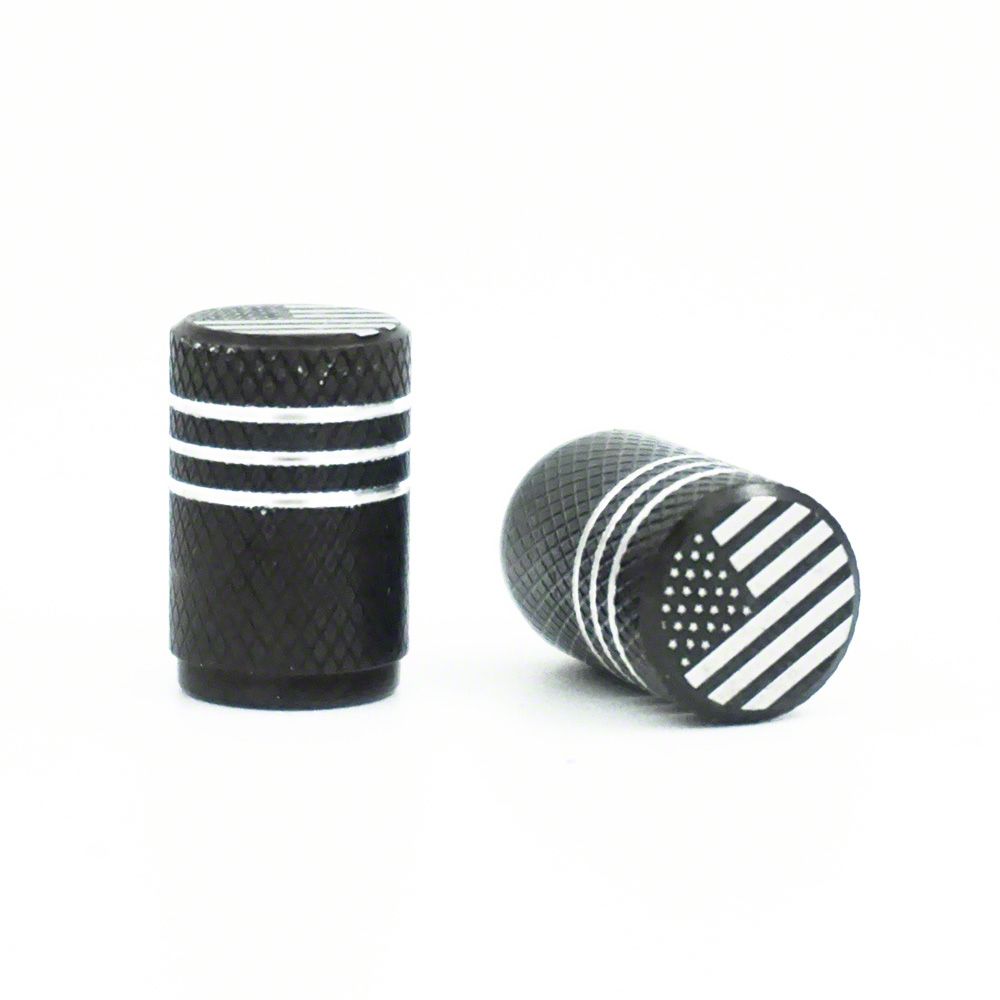 Aluminum Valve Stem Cap with Flag; Black (Universal; Some Adaptation May Be Required)