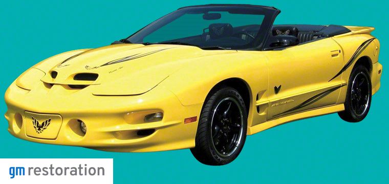 2002 GM F-Body Pontiac Fourth Generation Firebird Trans Am Collector Edition concluded a 33 year-run of the Firebird. At the top of its game and ending its reign as GM's performance muscle car, a Collector's Special Edition was released. This beautiful stripe kit was OEM factory applied to all 2,390 of these vehicles and kit fits all WS6 Ram Air or non-Ram Air models. This model paced the 2002 Daytona 500 and Jay Leno made it famous. Aside from track and festival cars, no pace car replicas were produced, however, every 2002 Trans Am Collector Edition is considered a Daytona 500 Pace Car.