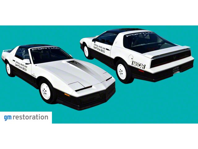 1983 Trans Am Daytona 500 Pace Car Decals Graphics Stripes Kit COMPLETE is a 17-piece, high-quality, printed kit, and includes all premium, 2-color, printed stripes covering the tu-tone paint lines. Manufactured with High Performance, Automotive Grade, 2m
