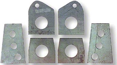 Replace heavily rusted or damaged subframe to body mounting points. Heavy die stamped, plated steel plates accurately repair the front, middle and rear subframe top mounting points. Set of six plates. Welding required.
