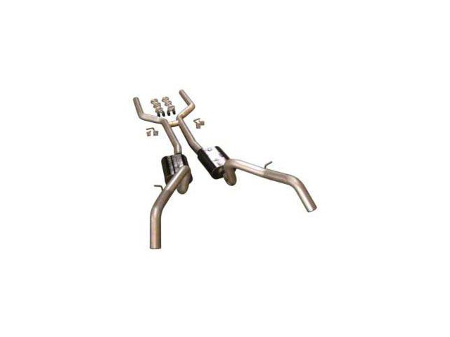 Experience the famous Flowmaster American Thunder sound by installing this dual exhaust system on your Firebird. In addition to the commanding V-8 exhaust note, the improved exhaust flow increases horsepower and efficiency on small or big block engines. Starting from the transmission crossmember, you have a full 3" pipe diameter all the way back to the rear factory location exit. Equipped with Delta Flow Super Series 40 mufflers for a deep powerful sound with low interior resonance, this complete kit includes aluminized tubing, an H-pipe and all necessary hardware for an easy bolt-on installation. This system does not fit convertible models.