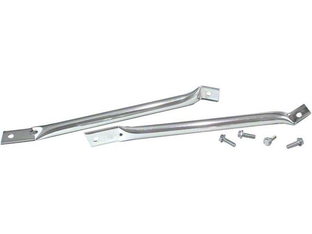 These highly polished chrome fender to radiator support bars install from the fenders to the radiator support on each side under the hood. These bars when installed, will help to keep the front sheet metal from flexing during driving conditions.