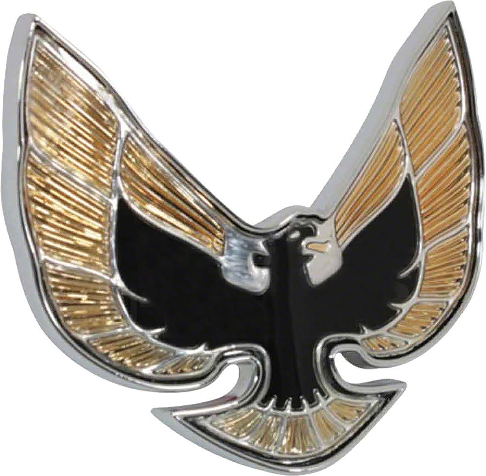 Emblems are like jewelry for your 1974, 1975 or 1976 Firebird. The right emblem can make a great looking car look even better. Eckler's Firebird is pleased to offer a Special Gold Edition front nose emblem that is sure to make your classic look its best. This ornately detailed die cast emblem is coated in gleaming chrome and features the correct black and gold inlays. Correctly sized and made for flawless installation, this Gold Edition emblem will really turn some heads. Treat your classic 1974, 1975 or 1976 Firebird to the best with a Special Gold Edition front emblem from Eckler's Firebird.