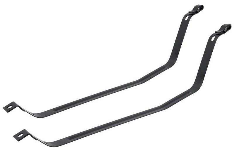 Reproduction fuel tank mounting straps that fit all 1967-69 Camaro & Firebird models.These quality straps are manufactured in heavy duty pre-formed stamped steel that replicate the original in quality and design. Approximate strap measurement bend to bend - 27 3/8" long x 1 1/4" wide.